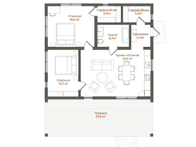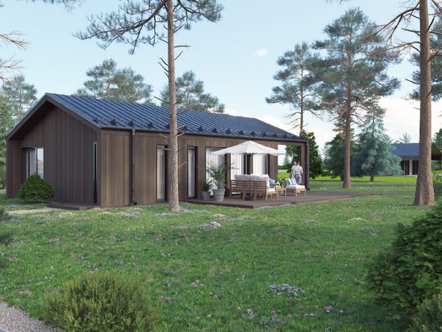 Проект одноэтажного дома «Бунгало–212» создан для тех, кто ценит простор и комфорт, особенно если участок позволяет разместить строение внушительных размеров.