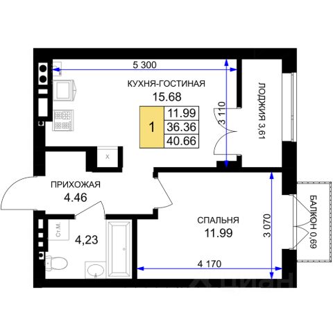 Однокомнатная квартира — это гармоничное сочетание современной планировки, естественного света и продуманной функциональности. Пространство легко зонируется на спальную и гостиную зоны, а просторная кухня с возможностью размещения полноценной обеденной группы становится центром домашнего уюта и встреч с близкими. Лоджия, выходящая из жилой зоны, расширяет полезную площадь: здесь можно организовать рабочий уголок, мини-оранжерею или уютное место для отдыха с чашкой кофе утром.