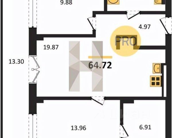 Квартира: 1 к 65,30 кв.м., 1 этаж в комплексе Включи, 1 очередь, корп.2, сдача: 4кв. , этажей: 7, адрес Гурьевск г., Героя России Катериничева ул., д. 2 корп 2, Застройщик: ССК.