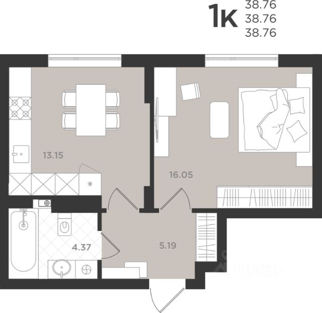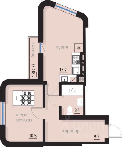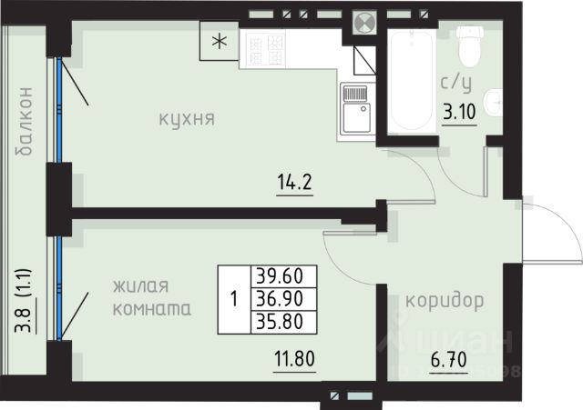 В продаже эксклюзивная квартира 41 (39.1 м2) с высокими потолками (>5 м):