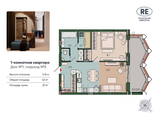 Продаётся 1-комнатная квартира в сданном доме (Адрес Счастья (Дом 3)), срок сдачи: III-кв. 2023, общей площадью 58.4 кв.м., на 7 этаже. Эпохальным событием в градостроении станет строительство первого в России Нарру Сіtу — Счастливого Города под названием "RусскаЯ ЕвропА". Новый экоквартал комфорт-класса на площади более 20 гектаров. Новый уровень комфортамногоэтажной застройки. От создателей Цветного Бульвара жилого комплекса, удостоенного множества наград, в том числе Федеральной премии URBAN AWARDS 2018 "Лучший региональный жилой комплекс комфорт-класса".Каждая квартира — индивидуальный проект, выполненный по европейским стандартам эргономики жилья. Энергосберегающее панорамное остекление открывает живописные виды и создает солнечное настроение, окна во всю стену от потолка до пола наполняют помещения светом. Тройной стеклопакет в алюминиевом профиле обеспечивает звуко- и теплоизоляцию. Высота потолков от 3-метров, рациональное размещение дверей, окон и вентканалов обеспечивают правильную циркуляцию воздуха в помещениях, способствуя созданию здорового микроклимата и экономию средств на отоплении и кондиционировании.Просторные балконы-террасы шириной от 2м — комфортабельное пространство, по сути, летняя гостиная + столовая + лаунж-зона — место отдыха для всей семьи и уединенного релакса. Домашняя сауна в ванной комнате — свежее решение и практичный вариант для истинных любителей банного отдыха и оздоровительных процедур в любое удобное время у себя дома."Условно грязная зона" прихожей отделена от чистой, за "пограничной чертой" — домофон и гостевой туалет, также выполняющий функции прачечной с местом для хранения бытовой химии, которую небезопасно держать в ванной. Третий кран с питьевой водой на кухне. Автономное отопление регулируется компактным теплопунктом в квартире, все громоздкое оборудование вынесено в отдельную придомовую газовую котельную, газа в квартирах нет.В первом жилом комплексе "Ласточкино гнездо" проекта "RусскаЯ ЕвропА" объединена архитектурная стилистика городов России и соседствующих европейских. Создана совершенно новая среда, где здания и природный ландшафт становятся единым целым. Это положительно сказывается не только на архитектурном облике всего комплекса, но и позволит в будущем каждому жителю почувствовать тесную связь и единение с природой.Комплекс "Династия". Чистота и гармония ритма архитектурного ансамбля, экологичность застройки в приоритете:- Закрытый трафик автомобилей с полной изоляцией зоны автостоянок транспорта от жилой зоны микрорайона;- Использование дождевой воды на технологические нужды в эксплуатации как квартир, так и комплекса в целом;- Использование возобновляемых источников энергии;- Современные, инновационные решения по функциональности пространства планировочных решений квартир;- Эксплуатируемые кровли с панорамными видами, оборудованные под общественные зоны отдыха.Эксперты строительной отрасли и ведущие архитекторы региона по праву называют проект "RусскаЯ ЕвропА" самым большим и значимым со Продается 1-комнатная квартира 60 м2 в Калининградской области.