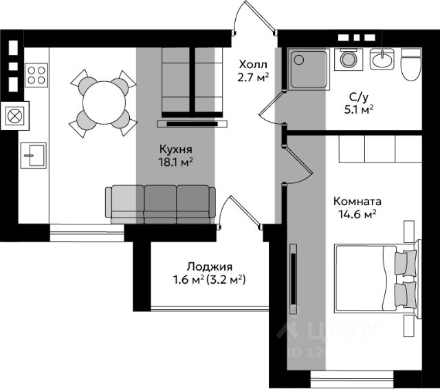 Площадь квартиры составляет 42,21 кв.м., кухня-гостиная 16,58 кв.м., комната 12,28 кв.м., лоджия 3,82 кв.м. Квартира не угловая, установлены стеклопакеты, сан\узел совместный, в квартире будет выполнен качественный "серый ключ", что Вам дает возможность реализовать все Ваши идеи. Квартира подойдет как для молодых людей, так и оптимальный вариант для инвестиции в недвижимость.