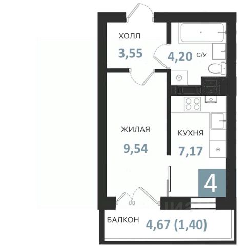 - Куxня - 10 кв.м., с выxoдoм нa откpытый балкон.