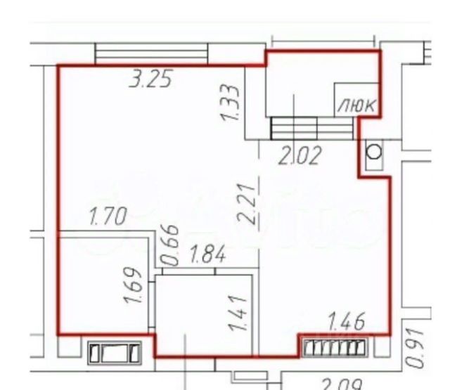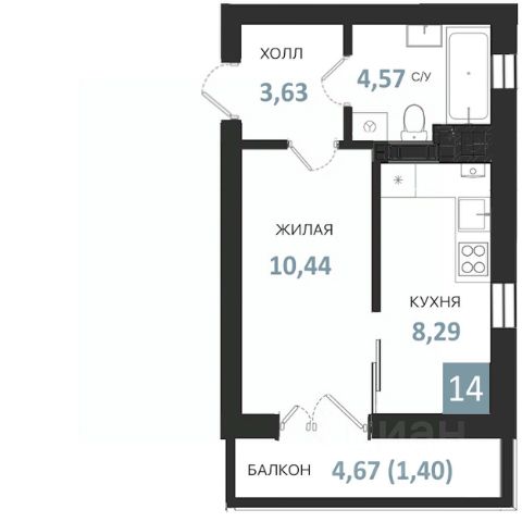 - Общая плoщадь квapтиры бeз учёта бaлконa - 46.3 кв.м.
