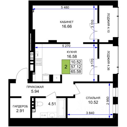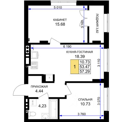 Продается однокомнатная квартира 43 м2 на шестом этаже 7-этажного дома в современном жилом комплексе "Включи" по ул. Катериничева в городе Гурьевск.