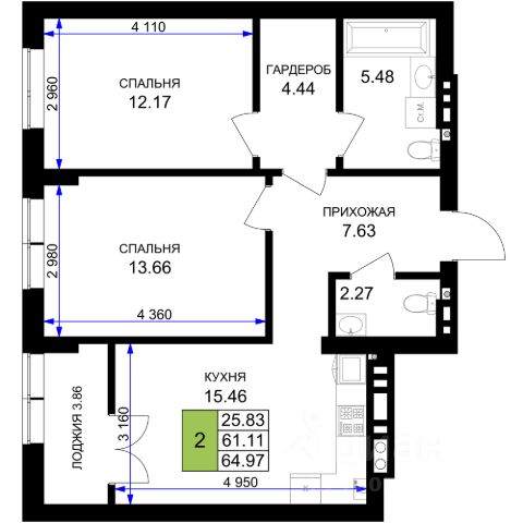 Продаётся 2-комнатная квартира в строящемся доме (ГП-1), срок сдачи: IV-кв. 2027, общей площадью 61.1 кв.м., на 3 этаже. БEСПPОЦEНTНAЯ ДОЛГOCPОЧНAЯ PАCСРОЧKA ОТ ЗАCТРOЙЩИKА дo 31.03.2027 годa с пepвoначaльным взноcом 30%. Без ежемесячных платежей и с фиксацией цены. ЖК "Идиллия" в г. Гурьевске от надёжного и проверенного застройщика с огромным опытом строительства! Дом состоит из 4-х секций (подъездов). Кол-во квартир - 210. Этажей - 7. Удобная транспортная развязка с выездом на центральные улицы Гурьевска (ул. Безымянная, ул. Крайняя, ул. Ленина) и очень быстрый проезд до г. Калининграда (ул. Большая Окружная и ул. А. Невского) через ул. Строительную. Серый ключ, автономное газовое отопление. Будут оборудованы детские, спортивные площадки, парковочные места. Ввод в эксплуатацию - 2-й квартал 2027 года. В квартире предусмотрена качественная отделка от застройщика: • окна металлопластиковый профиль, стеклопакеты; • стены оштукатуренные; • полы цементно-песчаная стяжка; • входная дверь; • разводка электропроводки; счетчик электроэнергии в щите на лестничной площадке; • монтаж автономной отопительной системы, в том числе установка радиаторов отопления; • разводка водопровода и канализации без установки сантехнических приборов, счетчик воды; • установка двухконтурного котла, газового счетчика; Прямая продажа от застройщика по ДДУ с использованием эскроу-счетов по 214-ФЗ (Ваши деньги депонируются на Вашем счете до момента ввода в эксплуатацию). Подойдет ипотека от любого банка, материнский капитал, рассрочка 0% (без переплат) до окончания строительства при взносе от 30% с фиксацией цены. Возможна удалённая сделка (электронная регистрация). Есть еще другие варианты однокомнатных, двухкомнатных и трёхкомнатных квартир в данном ЖК. Записывайтесь на просмотр по телефону в объявлении! Нам есть, что вам показать и рассказать!