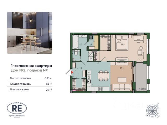 Прямая продажа от застройщика! Готовность проекта - 100%. Ключи сразу после сделки! Впечатляющая квартира с предчистовой отделкой, потолками 3 м и панорамным видом на парк. ЭКО квартал "РусскаЯ ЕвропА" — это современное пространство для жизни, состоящее из монолитно-кирпичных зданий переменной этажности. Застройщиком представлены разнообразные планировки квартир: от уютных студий до просторных четырехкомнатных квартир, включая двухуровневые решения и европланировки. Квартиры сдаются в предчистовой и чистовой отделке Особенности ЖК "Адрес Счастья" ЭКОквартала "Русская Европа": Проект комфорт-класса в престижном Ленинградском районе города; Ультрасовременные экологические инженерные решения в каждом доме и каждой квартире; Элегантное решение композиции фасадов от архитектурного бюро с мировым именем и две победы на международных архитектурных премиях URBAN AWARDS; Впервые в Калининграде lounge-зоны на крышах домов; Европейский подход к благоустройству: площадь с фонтанами, ландшафтный парк, детские и спортивные площадки; Панорамное остекление квартир поражают своими головокружительными видами на архитектуру комплекса и зеленые виды парков; Продуманная концепция инфраструктуры: Школа, детский сад и поликлиника на территории комплекса, уютные кафе и рестораны, супермаркет, фитнес-студия, службы сервиса, детский центр развития. Транспортная доступность: Удобный выезд на Московский проспект, улицу Гагарина и Большую Окружную; В пешей доступности Суздальский парк и городской парк ДЕВАУ Квартира с предчистовой отделкой Качественная предчистовая отделка позволит проявить творческий подход к созданию уникального дизайна квартиры, а все черновые работы, включая установку внутренних перегородок, разводку электричества и мокрых точек уже будут выполнены. Каждая квартира отличается особыми преимуществами и подготовлена к системе умный дом: - Панорамные окна от потолка до пола; - Собственная терраса; - Мастер спальня; - Гардеробная; - Дополнительная, сверхнормативная шумо/гидроизоляция стен и перекрытий - Индивидуальная приточно-вытяжная вентиляция с фильтрацией и рекуперацией Официальный отдел продаж проекта "Русская Европа" предлагает своим клиентам специальные условия приобретения квартир в рамках программ ипотечного кредитования от банков-партнеров. Больше подробностей о квартирах жилого комплекса "Адрес Счастья" и уникальное предложение для вашего бюджета - по телефону отдела продаж! Звоните! Продается 1-комнатная квартира 70 м2 в Калининграде.