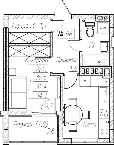 Общая ПЛОЩАДЬ - 35,4 кв.м. светлая, грамотно зонированная квартира с дизайнерским ремонтом и качественной мебелью (ЗАЕЗЖАЙ и ЖИВИ).