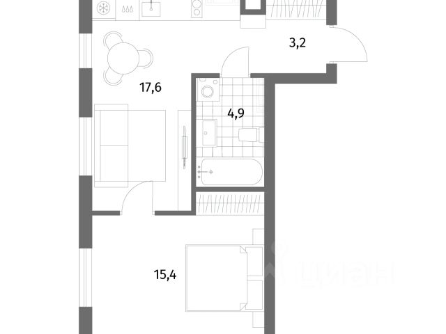 + Общая площадь 36м²;, комната 16,5м²; кухня 9,3, с/у совмещенный 3м.