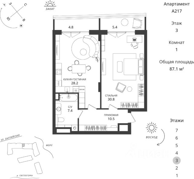 РУСЬ 2 Эксклюзивные апартаменты на побережье Балтийского моря, в Светлогорске Гостиничный комплекс "Русь-2" олицетворяет концепцию хилинг-отеля, созданного для восстановления сил, отдыха, оздоровления на берегу моря. Срок сдачи - 4 квартал 2028 года. Комплекс состоит из восьми корпусов с различными вариантами планировочных решений от студий площадью 28,5 м2 до апартаментов площадью 82,1 м2 с открытыми террасами. Высота потолков - 3 м. Предусмотрен подземный паркинг на 286 мест. В 1 очереди Руси расположится гостиница 5*, поликлиника реабилитационно-восстановительной направленности. Здесь вы найдете идеальный синтез релакса и бережного оздоровления. Особенностью второй очереди является то, что она будет полностью интегрирована с внешней инфраструктурой всего комплекса "Русь". Собственники апартаментов будут иметь возможность, не покидая комплекса, пользоваться всеми услугами СПА, бассейнов, фитнес-залов и хилинг-сервисов с приятным дисконтом. Комплекс окружает безупречная инфраструктура: Конференц-залы, коворкинги, места для работы на открытом воздухе Рестораны с летними террасами и видом на море Авторская концепция благоустройства территории, арт-объекты, озеленение и продуманным освещением Изысканные дизайнерские интерьеры и безупречное обслуживание консьерж-сервиса Апартамент в отделке White Box Для покупателей апартаментов действуют все ипотечные программы, рассрочка от застройщика или 100% оплата за собственные средства. Помощь с оформлением сделки от ипотечного брокера и юристов застройщика. Звоните, готовы ответить на все ваши вопросы в удобное для Вас время! Не является публичной офертой, предложение ограничено, оценивайте свои финансовые возможности и риски. Застройщик: ООО "СЗ Шеф Повар". Проектная декларация размещена на сайте наш.дом.рф. Сроки, условия проведения акций и актуальные цены на сайте девелопера. Когда вы выбираете недвижимость от К8 — вы выбираете комфортную, продуманную и растущую в цене среду для жизни или инвестиций. Что вы получаете: 1. Недвижимость, которая дорожает: каждый проект создаётся так, чтобы его ценность росла. Вы покупаете актив, который работает на вас. 2. Продуманные концепции: вы живете в пространстве с идеей, смыслом и логикой - где каждая деталь служит вашему удобству. 3. Настоящий комфорт: планировки, которые экономят место и время. Дома, где технические решения подчинены вашему образу жизни. 4. Эстетику, которая радует каждый день: архитектура, на которую приятно смотреть, и окружение, которое радует. 5. Качество, которое чувствуется: материалы, инженерия, благоустройство - вы видите и ощущаете результаты внимательного подхода. 6. Заботу на всех этапах: вам помогают подобрать недвижимость именно под ваши цели: для жизни, отдыха или инвестиций - в Светлогорске, Зеленоградске и Калининграде. 7. Возможность стабильного дохода: вы получаете доступ к курортной недвижимости с высокой инвестиционной привлекательностью доходностью выше рынка. 8. Сообщество единомышленников: комфортная среда, и