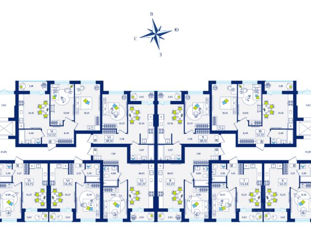 Продаётся 2-комнатная квартира в строящемся доме (Дом 8.1), срок сдачи: II-кв. 2027, общей площадью 53.29 кв.м., на 3 этаже. Новый жилой комплекс "Яркий" от застройщика "СтройИнвестиция" расположен по адресу: Калининградская обл., г. Зеленоградск, ул. Центральная улица.