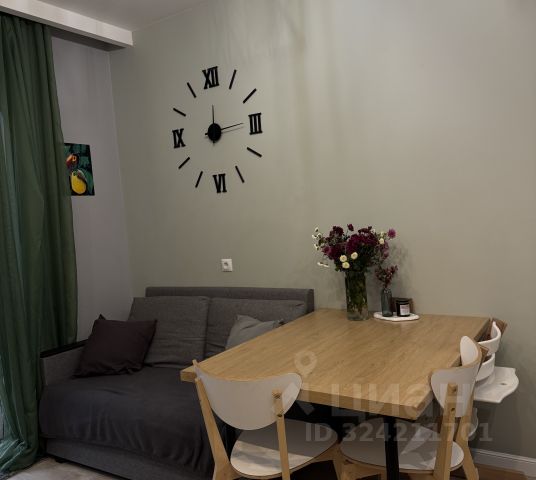 В комнате два окна, поэтому много света, большой обзор и ощущение простора, окна комнаты и кухни выходят в зелёный двор.