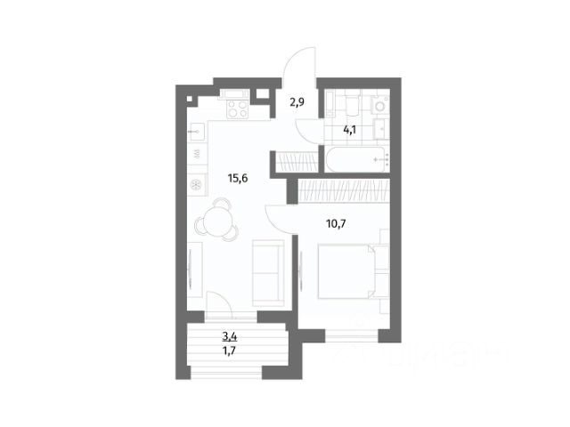 Продается 1-комн. квартира, площадью 41.89 кв.м. Возможен вариант покупки с использованием ипотечных средств. Жилая площадь 11.48 м2, кухня 16.91 кв. м, ремонта нет, комнаты изолированные. Квартира располагается на 4 этаже 7-этажного монолитно-кирпичного дома, высота потолков 2.7 м. Дом оборудован пассажирским лифтом.