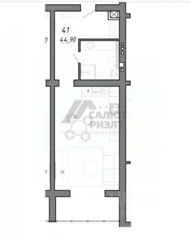 Комната 17,4 кв.м, кухня 9,9 кв.м., совмещенный санузел 4 кв.м., холл 6 кв.м., лоджия 3,8 кв.м.