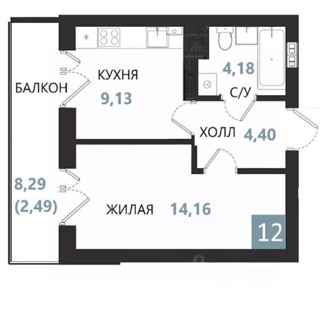 В продаже эксклюзивная квартира 41 (39.1 м2) с высокими потолками (>5 м):
