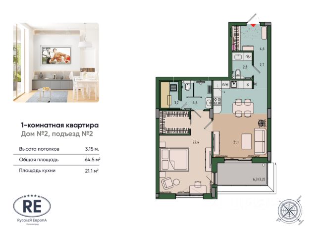 Прямая продажа от застройщика! Готовность проекта - 100%. Ключи сразу после сделки! Впечатляющая квартира с предчистовой отделкой, потолками 3 м и панорамным видом на парк. ЭКО квартал "РусскаЯ ЕвропА" — это современное пространство для жизни, состоящее из монолитно-кирпичных зданий переменной этажности. Застройщиком представлены разнообразные планировки квартир: от уютных студий до просторных четырехкомнатных квартир, включая двухуровневые решения и европланировки. Квартиры сдаются в предчистовой и чистовой отделке Особенности ЖК "Адрес Счастья" ЭКОквартала "Русская Европа": Проект комфорт-класса в престижном Ленинградском районе города; Ультрасовременные экологические инженерные решения в каждом доме и каждой квартире; Элегантное решение композиции фасадов от архитектурного бюро с мировым именем и две победы на международных архитектурных премиях URBAN AWARDS; Впервые в Калининграде lounge-зоны на крышах домов; Европейский подход к благоустройству: площадь с фонтанами, ландшафтный парк, детские и спортивные площадки; Панорамное остекление квартир поражают своими головокружительными видами на архитектуру комплекса и зеленые виды парков; Продуманная концепция инфраструктуры: Школа, детский сад и поликлиника на территории комплекса, уютные кафе и рестораны, супермаркет, фитнес-студия, службы сервиса, детский центр развития. Транспортная доступность: Удобный выезд на Московский проспект, улицу Гагарина и Большую Окружную; В пешей доступности Суздальский парк и городской парк ДЕВАУ Квартира с предчистовой отделкой Качественная предчистовая отделка позволит проявить творческий подход к созданию уникального дизайна квартиры, а все черновые работы, включая установку внутренних перегородок, разводку электричества и мокрых точек уже будут выполнены. Каждая квартира отличается особыми преимуществами и подготовлена к системе умный дом: - Панорамные окна от потолка до пола; - Собственная терраса; - Мастер спальня; - Гардеробная; - Дополнительная, сверхнормативная шумо/гидроизоляция стен и перекрытий - Индивидуальная приточно-вытяжная вентиляция с фильтрацией и рекуперацией Официальный отдел продаж проекта "Русская Европа" предлагает своим клиентам специальные условия приобретения квартир в рамках программ ипотечного кредитования от банков-партнеров. Больше подробностей о квартирах жилого комплекса "Адрес Счастья" и уникальное предложение для вашего бюджета - по телефону отдела продаж! Звоните! Купить 1-комнатную квартиру с большой кухней в Калининграде.