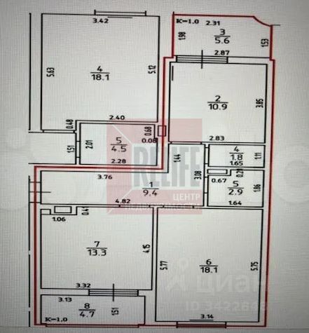 Жилая площадь 31.7 кв.м, кухня 22.4 кв.м.