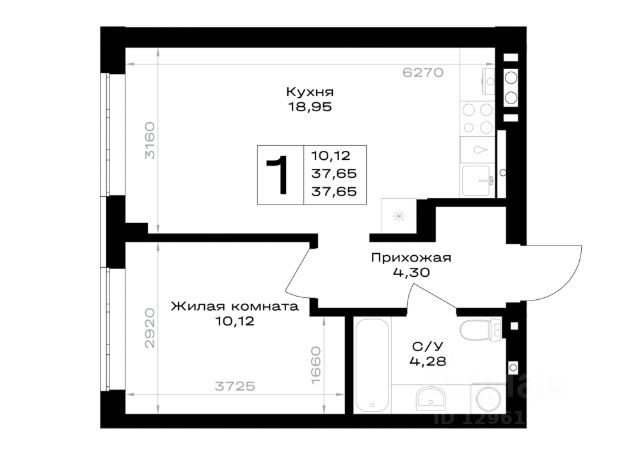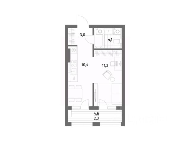 Продается квартира площадью 31.1 м² на 1 этаже 1 секции в River Park от компании ГК "ТРЕСТ". Площадь кухни 10.4 м².