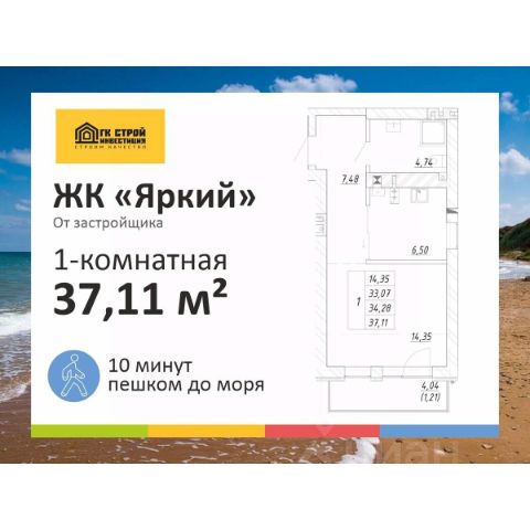 КВАРТИРА У МОРЯ В ЗЕЛЕНОГРАДСКЕ 10 минут пешком до пляжа! Семейная ипотека 5% Рассрочка от застройщика 0% Подарок: умный дом от Сбера Продается квартира комфорт-класса в новом малоэтажном ЖК "Яркий" у Балтийского моря, г. Зеленоградск. Прямая продажа от застройщика. Тихая локация в развивающемся районе - вдали от городского шума и рядом с побережьем. 1-комн. квартира 2 этаж О ЖИЛОМ КОМПЛЕКСЕ 4-этажные дома с лифтами Удобные планировки Отделка "серый ключ" - коммуникации спрятаны, стены оштукатурены, полы залиты Металлические двери с тепло- и шумоизоляцией Автономное газовое отопление Детские площадки, зоны отдыха, озеленение Доступная среда Парковочные места для жителей и гостей комплекса Закрытая территория со шлагбаумами ЛОКАЦИЯ ЖК расположен в посёлке Малиновка - это: тишина чистый, комфортный пляж 10 минут до Куршской косы на автомобиле 8 минут до центра Зеленоградска 35 минут до Калининграда магазины, кафе, транспорт - рядом О ЗАСТРОЙЩИКЕ "СТРОЙИНВЕСТИЦИЯ" Строим с 2014 года в Калининграде и области. Сопровождаем клиента на всех этапах - от подбора квартиры до регистрации сделки. Работаем только с эскроу-счетами - ваши средства защищены! Возможна дистанционная покупка и онлайн-сделка. ЖК "Яркий" - комфортная жизнь у моря и выгодная инвестиция. Подходит для проживания, отдыха и сдачи в аренду. Позвоните или напишите нам - расскажем о планировках, ипотеке и актуальных предложениях, запишем на просмотр или онлайн-показ. Продается 1-комнатная квартира на 2 этаже в Зеленоградске.