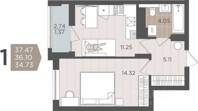 Однокомнатная квартира от застройщика с предчистовой отделкой в ЖК "Сиреневый бульвар" на 4 этаже. Общая площадь: 37.3 кв.м., жилая: 12.9 кв.м., площадь просторной кухни-столовой: 15 кв.м. Все окна выходят на одну сторону. В квартире один балкон, один совмещенный санузел. Высота потолков 2.7 м. Дом монолитный, многоподъездный, высотой 4 этажа. Квартира находится в 11-й секции в корпусе 2.1. На этаже 5 квартир. В подъезде 1 грузовой лифт. Окончание строительства - 3 квартал 2027 года. Оформление сделки по договору долевого участия. Жилой комплекс "Сиреневый бульвар" это 5 клубных 4-х этажных домов на 16 квартир и 9 домов с несколькими секциями. Вместе эти дома формируют собственное закрытое пространство с дворовыми территориями, спортивными и детскими площадками, местами отдыха и коммерческими помещениями. Дизайнерские входные группы и обилие зелени, удобные зоны отдыха всё устроено с особым вниманием. Жителей комплекса ждут просторные квартиры комфорт-класса с огромными террасами, мастер-спальнями, гардеробными и кухнями-гостиными. В каждом доме предусмотрены места для хранения велосипедов, кладовые помещения на цокольных этажах. "Сиреневый Бульвар" позволит своим жителям получить все преимущества городского комфорта и максимум плюсов от жизни на природе. Для жителей и гостей предусмотрены парковочные места, вся территория оборудована круглосуточной системой видеонаблюдения. В шаговой доступности находятся детский сад, начальная школа и продовольственные магазины. Жилой Комплекс "Сиреневый Бульвар" - уникальный проект, расположенный в Калининграде - балтийской жемчужине, в городе с богатым прошлым, комфортным настоящим и радужным будущим. Именно Калининград место встречи России и Европы. Жилой Комплекс "Сиреневый Бульвар" находится в географическом центре города. Ленинградский район (бывшие Ротенштейн, Марауненхоф, Лип, Девау, Палве и Куммерау) это северная часть Калининграда, где в довоенные годы располагался Старый город. Жилой комплекс находится рядом с Верхним озером, Нижним прудом и ещё 12 городскими водоемами. Территория всего проекта занимает 21,9 гектаров и находится между улицами Арсенальная, Пехотная и 4-ой Большой окружной. Аккредитация в банках: "Сбербанк России", ПАО "Газпромбанк", ПАО Банк "ВТБ", ПАО Банк "ФК Открытие", ПАО "Промсвязьбанк". #zmfs2Z