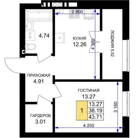 + комната 16,5м²;