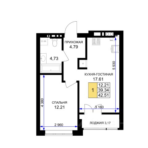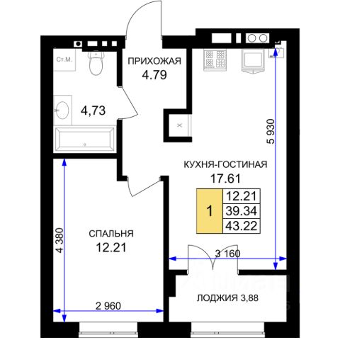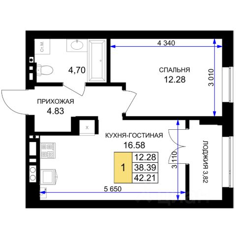 + балкон 3 м2 с лучшим вид на закат и город на юго-западную сторону.