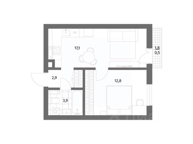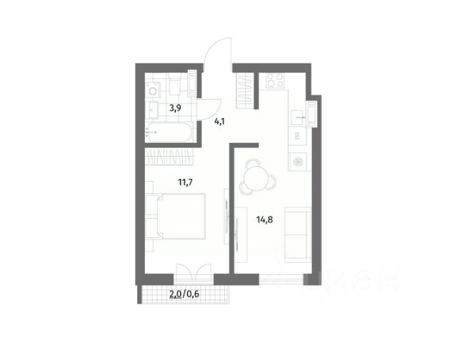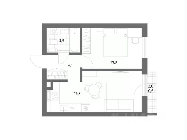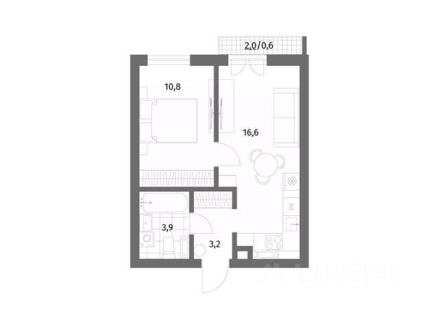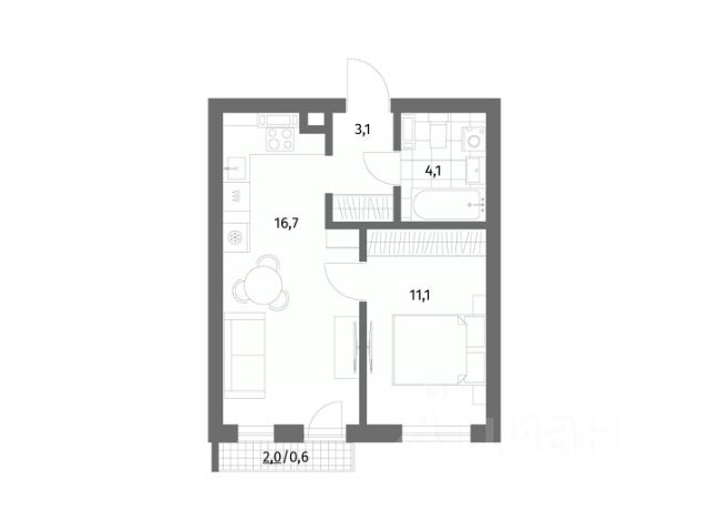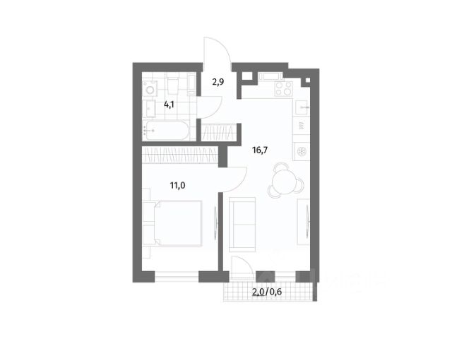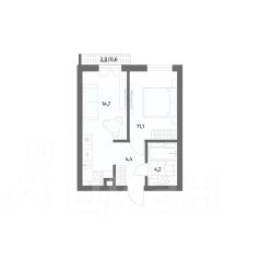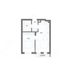 + Общая площадь 36м²;, комната 16,5м²; кухня 9,3, с/у совмещенный 3м.