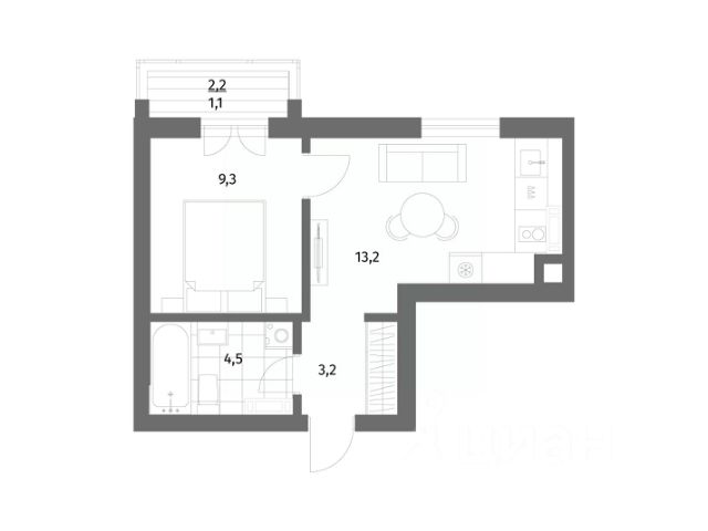 + кухня — 9.3м,