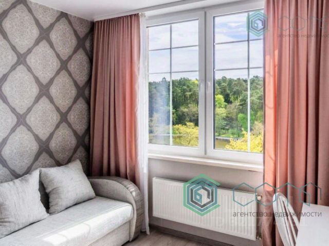 Удачное планировочное решение позволяет организовать комфортное пространство из видовой спальни и просторной кухни-гостиной площадью 18,54 кв.м.