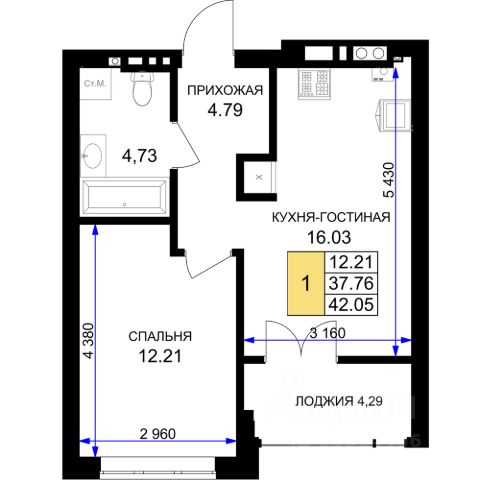 Квартира: 1 к 41,31 кв.м., 7 этаж в комплексе Включи, 5 очередь, корп.10, сдача: 3кв. , этажей: 7, адрес Гурьевск г., Героя России Катериничева ул., , Застройщик: ССК. Номер в базе: J31260L26867
