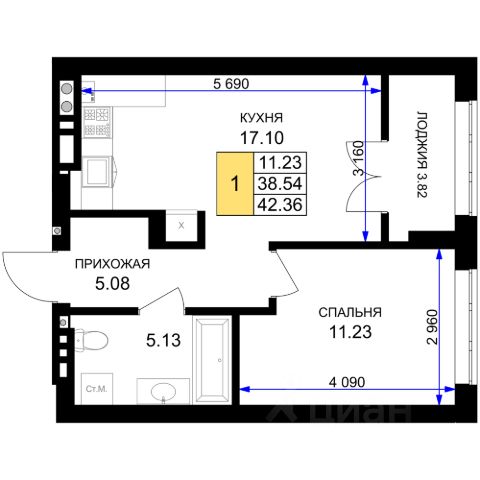 Продаётся 1-комнатная квартира в строящемся доме (Дом 1), срок сдачи: III-кв. 2026, общей площадью 35.87 кв.м., на 7 этаже. Современный жилой 7-ми этажный дом в сердце города. Несмотря на близость к центру, здесь всегда тихо и безопасно. Все рядом - магазины, садик и обучающая гимназия. Идеальное место для семей, ценящих комфорт и удобство в сочетании с городской инфраструктурой. В доме просторные квартиры с современными планировками, а из окон открываются живописные виды на окружающий пейзаж.