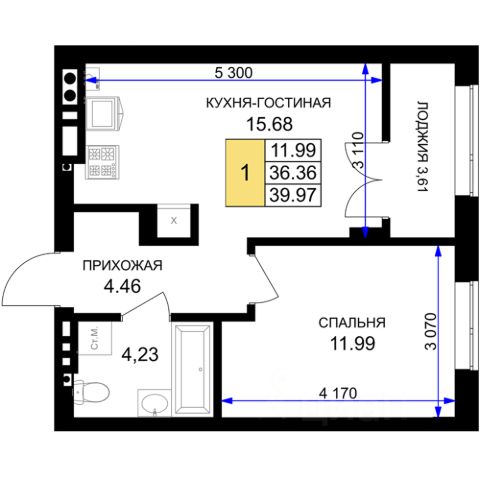 Однокомнатная квартира — это гармоничное сочетание современной планировки, естественного света и продуманной функциональности. Пространство легко зонируется на спальную и гостиную зоны, а просторная кухня с возможностью размещения полноценной обеденной группы становится центром домашнего уюта и встреч с близкими. Лоджия, выходящая из жилой зоны, расширяет полезную площадь: здесь можно организовать рабочий уголок, мини-оранжерею или уютное место для отдыха с чашкой кофе утром.