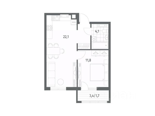 Площадь квартиры составляет 42,21 кв.м., кухня-гостиная 16,58 кв.м., комната 12,28 кв.м., лоджия 3,82 кв.м. Квартира не угловая, установлены стеклопакеты, сан\узел совместный, в квартире будет выполнен качественный "серый ключ", что Вам дает возможность реализовать все Ваши идеи. Квартира подойдет как для молодых людей, так и оптимальный вариант для инвестиции в недвижимость.