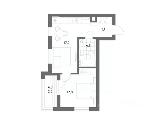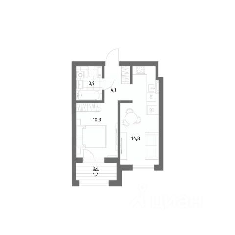 Продается квартира площадью 41.1 м² на 1 этаже 1 секции в Ривер парк от компании ГК "ТРЕСТ". Площадь кухни 17.6 м².