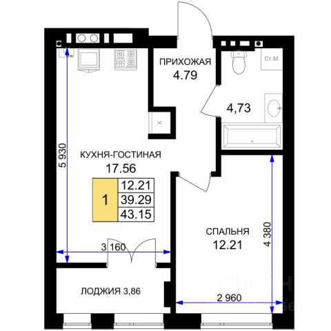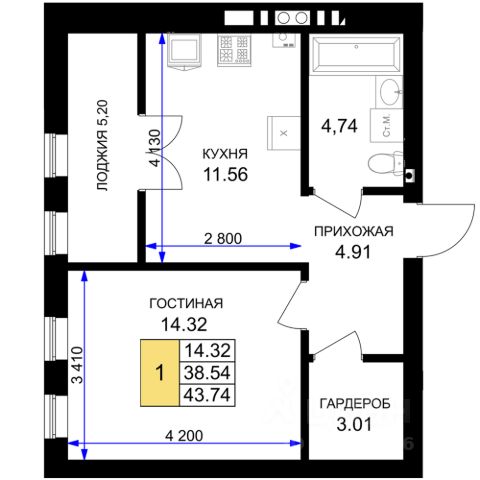 Удобная планировка вместительная кухня 12.7 кв. м, большая комната 19.5 кв м, просторный коридор, с/у совмещенный, застекленная лоджия.