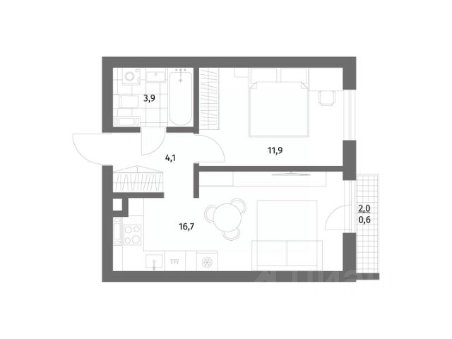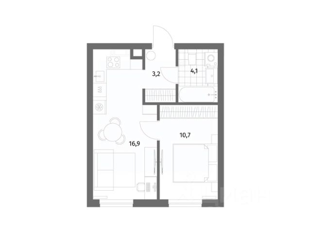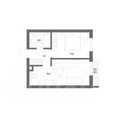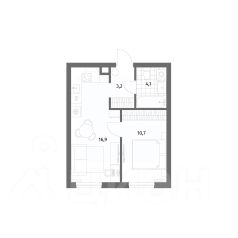 Общая площадь квартиры составляет 30 кв.м (остекленная утепленная лоджия 2,2 кв.м, с хорошим видом на будущий парк и церковь) : кухня —7,2 кв.м; комната — 11,7 кв.м; совмещенный санузел — 2,8 кв.м; * коридор — 5,3 кв.м в котором размещена удобная большая гардеробная.
