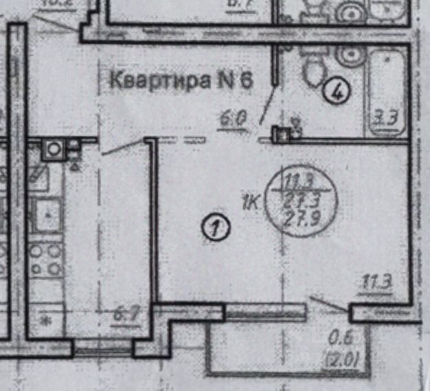 Общая площадь квартиры составляет 21,1 кв. м.