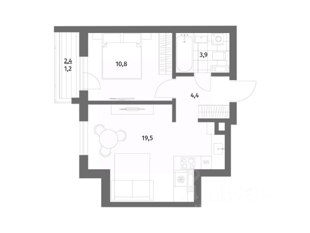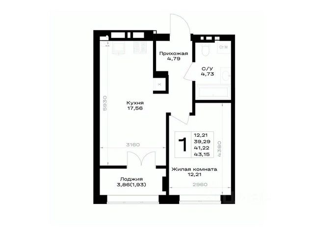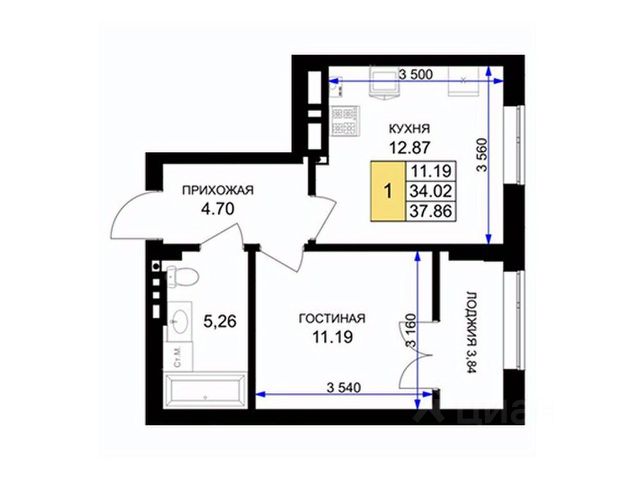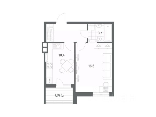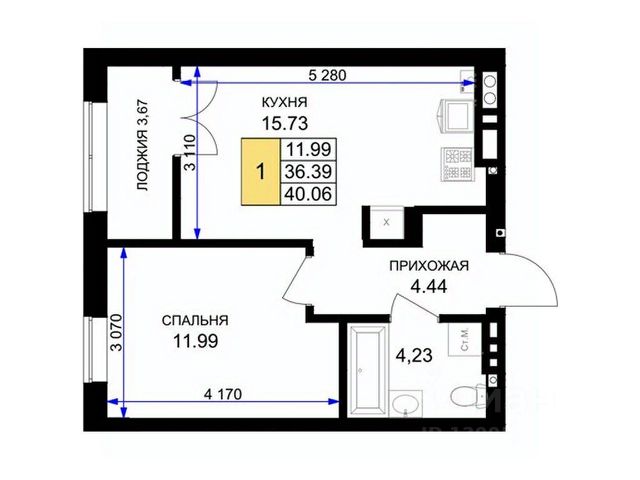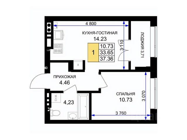 Общая площадь квартиры составляет 30 кв.м (остекленная утепленная лоджия 2,2 кв.м, с хорошим видом на будущий парк и церковь) : кухня —7,2 кв.м; комната — 11,7 кв.м; совмещенный санузел — 2,8 кв.м; * коридор — 5,3 кв.м в котором размещена удобная большая гардеробная.