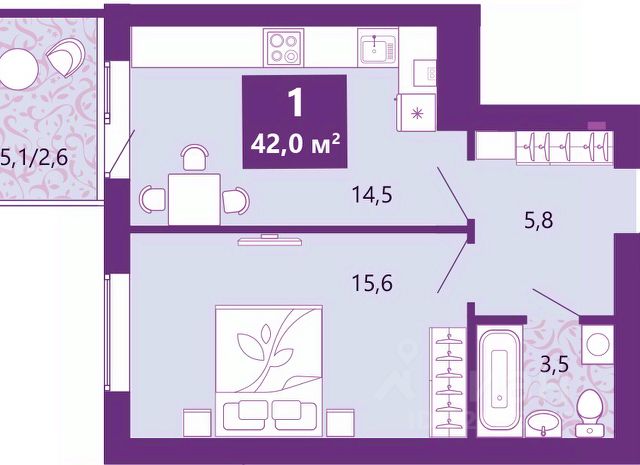 Просторная 1-комн. квартира с предчистовой отделкой в ЖК "Сиреневый бульвар" на 2 этаже. Общая площадь: 40.4 кв.м., жилая: 14.8 кв.м., площадь просторной кухни-столовой: 12.7 кв.м. Все окна выходят на одну сторону. В квартире один балкон, один совмещенный санузел. Высота потолков 2.7 м. Дом монолитный, многоподъездный, высотой 4 этажа. Квартира находится в 3-й секции в корпусе 5.1. На этаже 4 квартиры. В подъезде 1 грузовой лифт. Дом сдан. Оформление сделки по договору купли-продажи. Жилой комплекс "Сиреневый бульвар" это 5 клубных 4-х этажных домов на 16 квартир и 9 домов с несколькими секциями. Вместе эти дома формируют собственное закрытое пространство с дворовыми территориями, спортивными и детскими площадками, местами отдыха и коммерческими помещениями. Дизайнерские входные группы и небольшие приусадебные участки квартир нижних этажей, обилие зелени, удобные зоны отдыха всё устроено с особым вниманием. Жителей комплекса ждут просторные квартиры комфорт-класса с огромными террасами, мастер-спальнями, гардеробными и кухнями-гостиными. В каждом доме предусмотрены места для хранения велосипедов, кладовые помещения на цокольных этажах. "Сиреневый Бульвар" позволит своим жителям получить все преимущества городского комфорта и максимум плюсов от жизни на природе. Для жителей и гостей предусмотрены парковочные места, вся территория оборудована круглосуточной системой видеонаблюдения. В шаговой доступности находятся детский сад, начальная школа и продовольственные магазины. Жилой Комплекс "Сиреневый Бульвар" - уникальный проект, расположенный в Калининграде - балтийской жемчужине, в городе с богатым прошлым, комфортным настоящим и радужным будущим. Именно Калининград место встречи России и Европы. Жилой Комплекс "Сиреневый Бульвар" находится в географическом центре города. Ленинградский район (бывшие Ротенштейн, Марауненхоф, Лип, Девау, Палве и Куммерау) это северная часть Калининграда, где в довоенные годы располагался Старый город. Жилой комплекс находится рядом с Верхним озером, Нижним прудом и ещё 12 городскими водоемами. Территория всего проекта занимает 21,9 гектаров и находится между улицами Арсенальная, Пехотная и 4-ой Большой окружной. Аккредитация в банках: ПАО Банк "ВТБ", "Сбербанк России", ПАО "Газпромбанк", ПАО Банк "ФК Открытие", ПАО "Промсвязьбанк". #ZM24zu