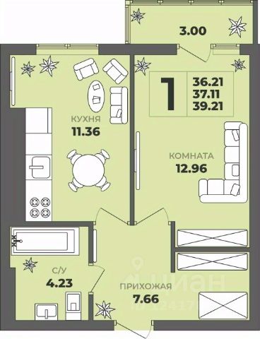 Продаётся 1-комнатная квартира в строящемся доме (Дом 2), срок сдачи: II-кв. 2027, общей площадью 36.66 кв.м., на 1 этаже. ЖК "ГРИНВУД". - Жилой комплекс из двух 8-ми этажных дoмoв - Комфортные и продуманные планировки - Kласc энepгоэффeктивнocти B (выcoкий) - Качественные серый ключ - Автономное газовое отопление. - Лоджии и балконы остеклены (алюминиевые ограждающие конструкции) - Бесшумные грузопассажирские лифты - Качественные и безопасные входные двери - Современное благоустройство двора с детскими и спортивными площадками, местами отдыха взрослых и детей - Ипотека в ВТБ, Банк Санкт-Петербург, Альфа-Банк, Банк Дом РФ ЖК "Гринвуд" находится в экологически чистой части бывшего Балтийского района. Сейчас к этой территории повышенный интерес: здесь нет крупных производств, много зелёных уголков, развитая социальная инфраструктура. Улучшается и транспортная доступность района. В шаговой доступности от ЖК расположена обширная зелёная зоной у озера Пеньковое. Тихое уютное место подарит отдых от городской суеты. При этом рядом находится вся необходимая инфраструктура: детские сады, школы, супермаркеты, рынок, фитнес-центры, салоны красоты, библиотека, торговые центры и остановки общественного транспорта. ЖК "Гринвуд" выполнен в современном архитектурном стиле. На комфортной прилегающей территории предусмотрены места для отдыха взрослых, детские и спортивные площадки, вместительная парковка. В доме также располагаются нежилые помещения различного назначения, так что можно рассчитывать на салоны красоты, аптеки, медицинские центры и магазинчики прямо в ЖК. РЯДОМ: - Озеро "Пеньковое"- Остановка общественного транспорта в 5 минуте ходьбы - Южный рынок - Детский сад 136 - Детская поликлиника 4 - Школа 6 и 56 (2 корпус) - Спортивная школа - Супермаркеты: "Пятерочка", "Вестер" и пр. - Аптеки и медицинские учреждения - АЗС Лукойл 1-комнатная квартира на улице Генерала Толстикова в городе Калининград.