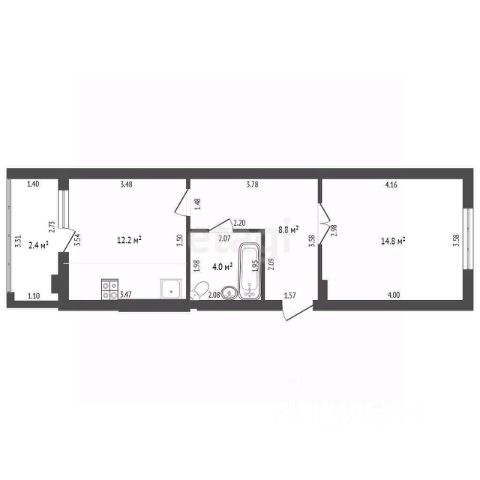 - комната 18,2 м.кв, правильной формы, с выходом на лоджию 4,8 м.кв. Много света, воздуха, удобна для расстановки жилой мебели, зонирования пространства