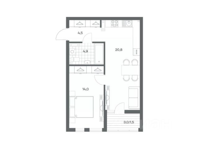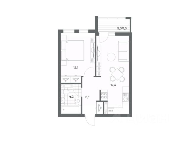 Продается квартира площадью 30.2 м² на 1 этаже 2 секции в Гагарина 30 от компании ГК "ТРЕСТ". Площадь кухни 9.9 м². Жилой комплекс комфорт-класса "Гагарина 30" расположен в Ленинградском районе Калининграда на улице Юрия Гагарина. Жилой комплекс включает в себя три корпуса высотой 9-18 этажей. Срок сдачи намечен на 1 квартал 2028 года. Жилой комплекс расположен в географическом центре города Калининград. Он знаменит Музеем янтаря, Королевскими воротами, Верхним и Нижним прудами, районами Альтштадт и Лебенихт. Из жилого квартала за 10 минут можно добраться до парков Тихий и Кальтхёфер. В жилом комплексе 457 квартир, из них 55% двух- и трёхкомнатные. Доступны варианты с просторными кухнями-гостиными, мастер-спальнями и кладовыми. На первых этажах расположены квартиры с приватными открытыми террасами. На верхних этажах лоджии с холодным остеклением, панорамными и увеличенными окнами. Высота потолков первого и последнего этажей - 3 м (кроме первого корпуса), остальных 2,72 м. Интерьеры МОП-ов выполнены в минималистичном стиле с контрастными, дополняющими друг друга материалами. Благодаря использованию светлых оттенков, природных текстур и декоративного освещения, пространство имеет большое количество света. В лифт-холле предусмотрена зона ожидания с мягкой мебелью. Почтовые ящики вынесены в тамбур, а рядом со стойкой домофона предусмотрена консоль для сумок. Дизайн-проект разработан студией Right design. Для удобства автомобилистов созданы подземные паркинги: на 125 машиномест и кладовые помещения. В паркинг можно будет спуститься на лифте комфортно людям, безопасно автомобилям! 1-комнатная квартира на улице Юрия Гагарина в городе Калининград.