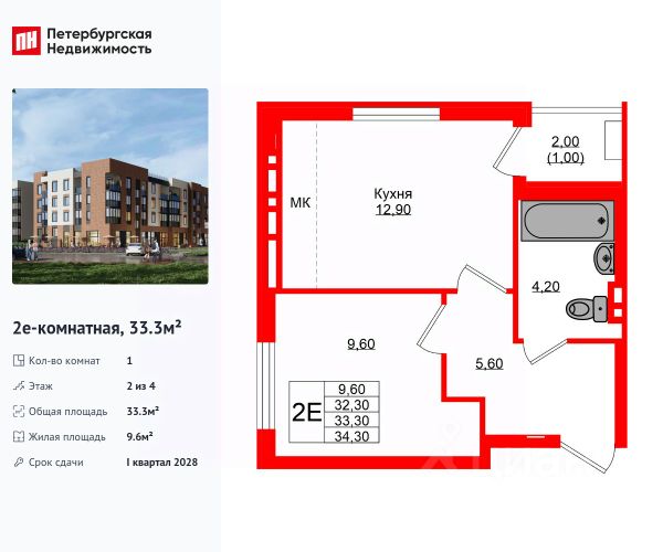 Продается просторная 1-комнатная квартира от застройщика в жилом комплексе "Кроны и Волны" в Зеленоградск. Удобная, классическая, функциональная европланировка, большая кухня-гостиная 17.7 м², просторная прихожая 5.1 м². Общая площадь квартиры - 41.1 м², жилая 11.6 м², высота потолка 2.7 м. Квартира продается с отделкой "Серый ключ КиВ". Что особенного в ЖК "Кроны и Волны"? • Современный малоэтажный жилой комплекс • Дизайнерские детские площадки, зоны для спорта и активного отдыха, велодорожки • Помещения для колясок и велосипедов в каждой парадной • Неповторимые лесные пейзажи в непосредственной близости к побережью Балтийского моря • Концепция "Двор без машин"