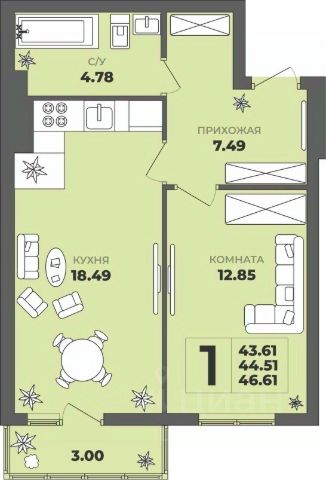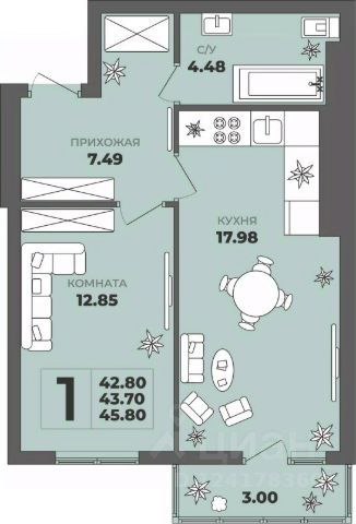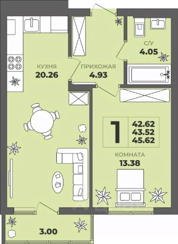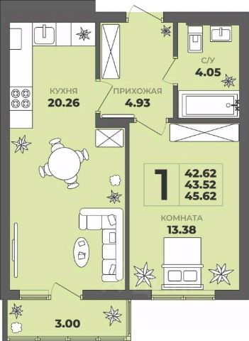 Продаётся 1-комнатная квартира в строящемся доме (Дом 1), срок сдачи: II-кв. 2027, общей площадью 43.52 кв.м., на 7 этаже. ЖК "ГРИНВУД". - Жилой комплекс из двух 8-ми этажных дoмoв - Комфортные и продуманные планировки - Kласc энepгоэффeктивнocти B (выcoкий) - Качественные серый ключ - Автономное газовое отопление. - Лоджии и балконы остеклены (алюминиевые ограждающие конструкции) - Бесшумные грузопассажирские лифты - Качественные и безопасные входные двери - Современное благоустройство двора с детскими и спортивными площадками, местами отдыха взрослых и детей - Ипотека в ВТБ, Банк Санкт-Петербург, Альфа-Банк, Банк Дом РФ ЖК "Гринвуд" находится в экологически чистой части бывшего Балтийского района. Сейчас к этой территории повышенный интерес: здесь нет крупных производств, много зелёных уголков, развитая социальная инфраструктура. Улучшается и транспортная доступность района. В шаговой доступности от ЖК расположена обширная зелёная зоной у озера Пеньковое. Тихое уютное место подарит отдых от городской суеты. При этом рядом находится вся необходимая инфраструктура: детские сады, школы, супермаркеты, рынок, фитнес-центры, салоны красоты, библиотека, торговые центры и остановки общественного транспорта. ЖК "Гринвуд" выполнен в современном архитектурном стиле. На комфортной прилегающей территории предусмотрены места для отдыха взрослых, детские и спортивные площадки, вместительная парковка. В доме также располагаются нежилые помещения различного назначения, так что можно рассчитывать на салоны красоты, аптеки, медицинские центры и магазинчики прямо в ЖК. РЯДОМ: - Озеро "Пеньковое"- Остановка общественного транспорта в 5 минуте ходьбы - Южный рынок - Детский сад 136 - Детская поликлиника 4 - Школа 6 и 56 (2 корпус) - Спортивная школа - Супермаркеты: "Пятерочка", "Вестер" и пр. - Аптеки и медицинские учреждения - АЗС Лукойл