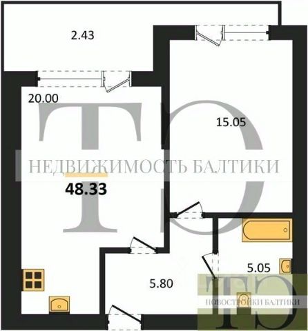 Продаётся 1-комнатная квартира в строящемся доме (Дом 3), срок сдачи: II-кв. 2026, общей площадью 48.65 кв.м., на 2 этаже. Новый жилой комплекс "Янтарные Сезоны" от Группы компаний "Модуль-Стройград" расположен по адресу: Калининградская обл., пгт Янтарный, ул. Советская.