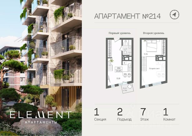 В продаже эксклюзивная квартира 41 (39.1 м2) с высокими потолками (>5 м):