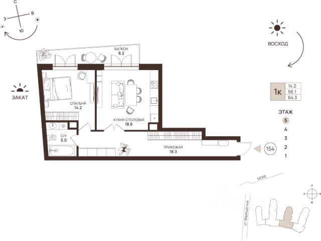 К продаже предлагается шикарная 1-комнатная квартира площадью 48,03/41,77 кв.м, расположенная на 6-ом этаже 7-ми этажного жилого комплекса бизнес-класса "Гармония". Удачное планировочное решение позволяет организовать комфортное пространство из видовой спальни и просторной кухни-гостиной площадью 18,54 кв.м. Спальная зона деликатно отделена от гостевой и обладает балконом. Окна квартиры выходят на юго-восточную сторону света. О квартире: • Расположена на 6-ом из 7-ми этажей • Кухня-гостиная площадью 18,54 кв.м. • Спальня площадью 11,05 кв.м. • Балкон • Совмещенный санузел • Потолок 2,80 метра В самом сердце соснового леса, одного из крупнейших лесных массивов Светлогорска, строится новый жилой комплекс бизнес-класса - ЖК Гармония. ЖК Гармония - это жилой комплекс, состоящий из 3 секций высотой до 7 этажей, с которых будут открываться панорамные виды на лесной массив. В доме предусмотрены сквозные подъезды, соединяющие дворовое пространство и территорию вокруг. В доме также будут располагаться коммерческие помещения. Плюсы: Архитектурное решение в Скандинавском стиле: • прямые и чёткие линии, простые формы; • натуральные материалы и природные цвета; • экологичный дизайн; • отсутствие непрактичных декоративных элементов; • использование естественного света; • сквозные подъезды; • кладовые; • спортивная и детская площадки с антитравматическим покрытием, велопарковка; • 43 вида планировочных решений; • лоджия и балкон в каждой квартире, панорамное остекление; • скатная крыша, фальцевая кровля, красный керамический блок; • двор без машин, подземный паркинг. Система "умный дом": умные квартирные счётчики, видеонаблюдение территории возле дома, парковка, лифт; видеодомофон. Местоположение и транспортная доступность: ЖК Гармония будет возведён в районе 2,4 км от моря и центра города Светлогорска. Для автомобилистов есть удобные выезды как в центр города, так и на Большую окружную в сторону Калининграда, Зеленоградска, Пионерского, аэропорта. Комплекс расположится прямо у озера Майское в окружении Светлогорского леса. Инфраструктура: На территории ЖК Гармония создаются благоустроенные дворы без доступа автомобилей, а для автомобилистов вместительный подземный паркинг на 36 машиномест. Вокруг будущего комплекса уже сложилась богатая инфраструктура района со школой, детскими садами, детской поликлиникой, детскими лагерями отдыха, физкультурно-оздоровительный комплекс с ледовым катком, бассейном, объектами ритейла. Варианты оплаты: Ипотека с Господдержкой, семейная ипотека, военная ипотека, рассрочка от застройщика, материнский капитал, Trade-in, онлайн сделка. Продается 1-комнатная квартира в новом доме с большой кухней в Светлогорске.