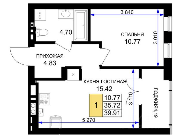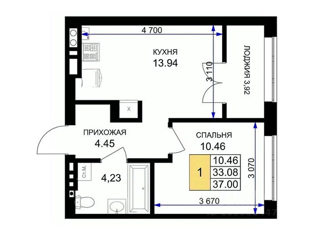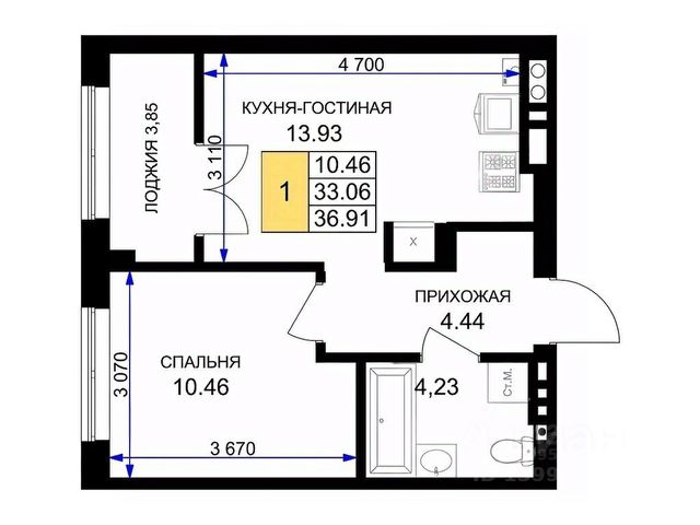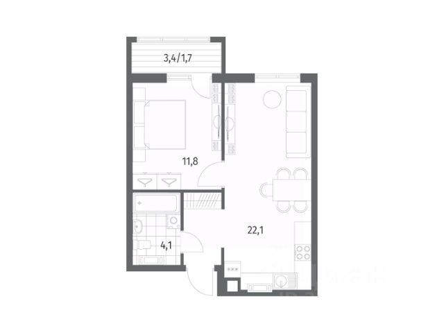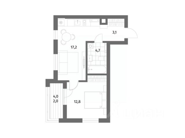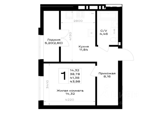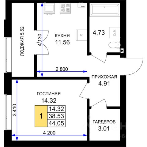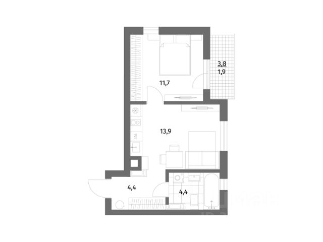 Площадь квартиры составляет 42,21 кв.м., кухня-гостиная 16,58 кв.м., комната 12,28 кв.м., лоджия 3,82 кв.м. Квартира не угловая, установлены стеклопакеты, сан\узел совместный, в квартире будет выполнен качественный "серый ключ", что Вам дает возможность реализовать все Ваши идеи. Квартира подойдет как для молодых людей, так и оптимальный вариант для инвестиции в недвижимость.