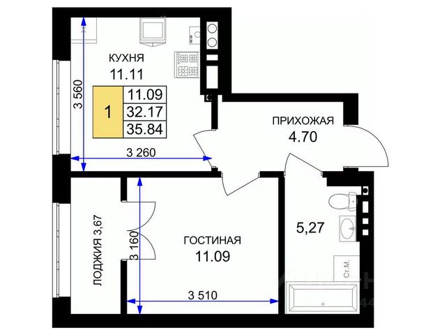Отличное предложение для комфортной жизни! Подробнее в отделе продаж. Звоните! 1-комнатная квартира от застройщика в Гурьевском районе Калининградской области.
