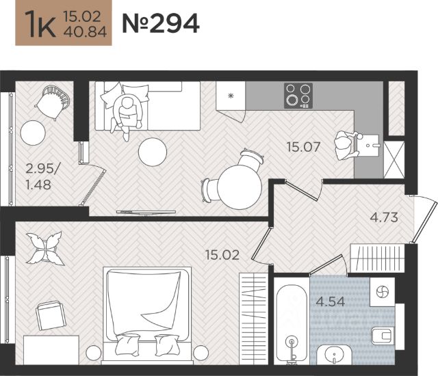 Продаётся 1-комнатная квартира в строящемся доме (Дом 2), срок сдачи: IV-кв. 2026, общей площадью 39.98 кв.м., на 8 этаже. Жилой комплекс "Танго" от застройщика "ДомАрт" расположен в г. Калининград, по ул. Каблукова.